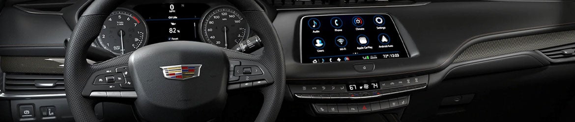 The 2022 Cadillac XT4 is available in three trim levels: Luxury, Premium Luxury, and Sport. All trim levels come standard with 18-inch alloy wheels, which are upgradeable to 20 inches at the Premium Luxury and Sport trim levels. The Premium Luxury trim also offers illuminating chrome-accented door handles, while the Sport trim has a distinct sport mesh front grille, tinted neutral-density tail lamps, and LED front cornering lamps and turn signals. An Ultraview panoramic sunroof with roof rails is an available option for all.